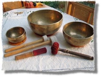 Bei der Klangschalenmassage werden verschiedene tibetanische Klangschalen nacheinander direkt auf den Körper, die Füße und Hände aufgelegt und mit einem Klöppel angeschlagen. Die Klangwellen übertragen sich direkt auf den Körper und setzen dort ihre heilsamen Energien frei.